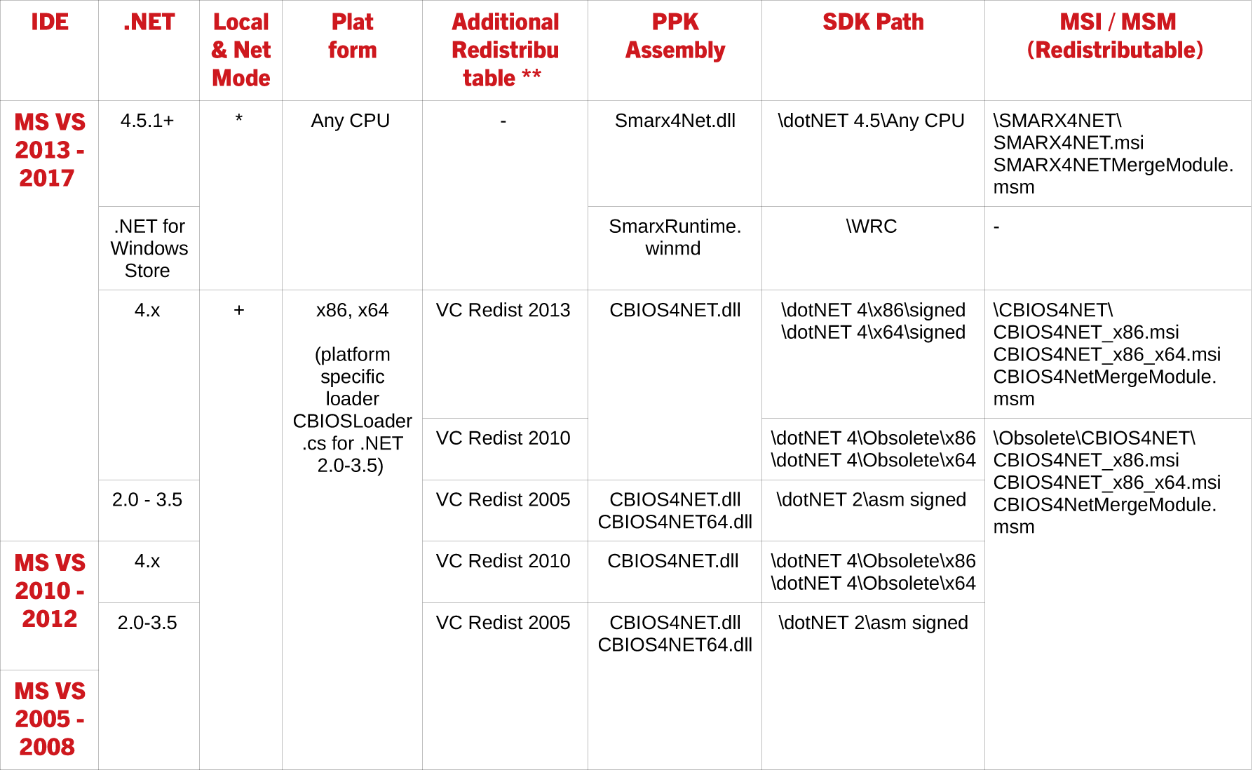 | If you are working with Visual Studio 2013 and higher, you can use our Smarx API, which is based on CBIOS4NET. For a description of the Smarx API, see Chapter 11 of the Smarx Compendium. |