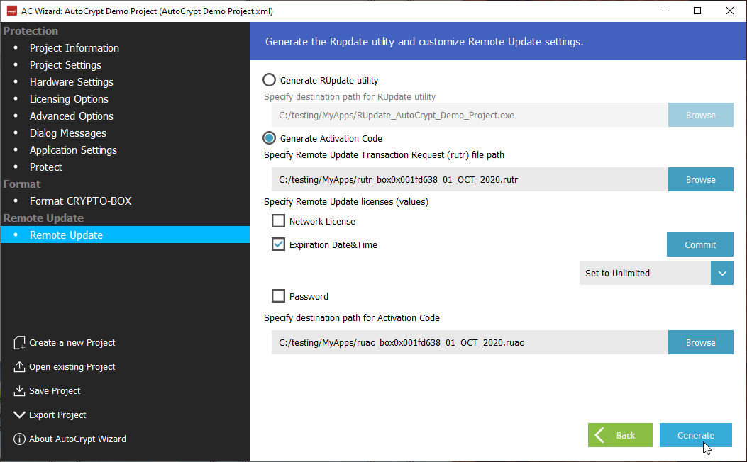 After retrieving the Transaction Request file from the end-user, start AutoCrypt Wizard again and choose the “Remote Update” option in the left navigation bar.